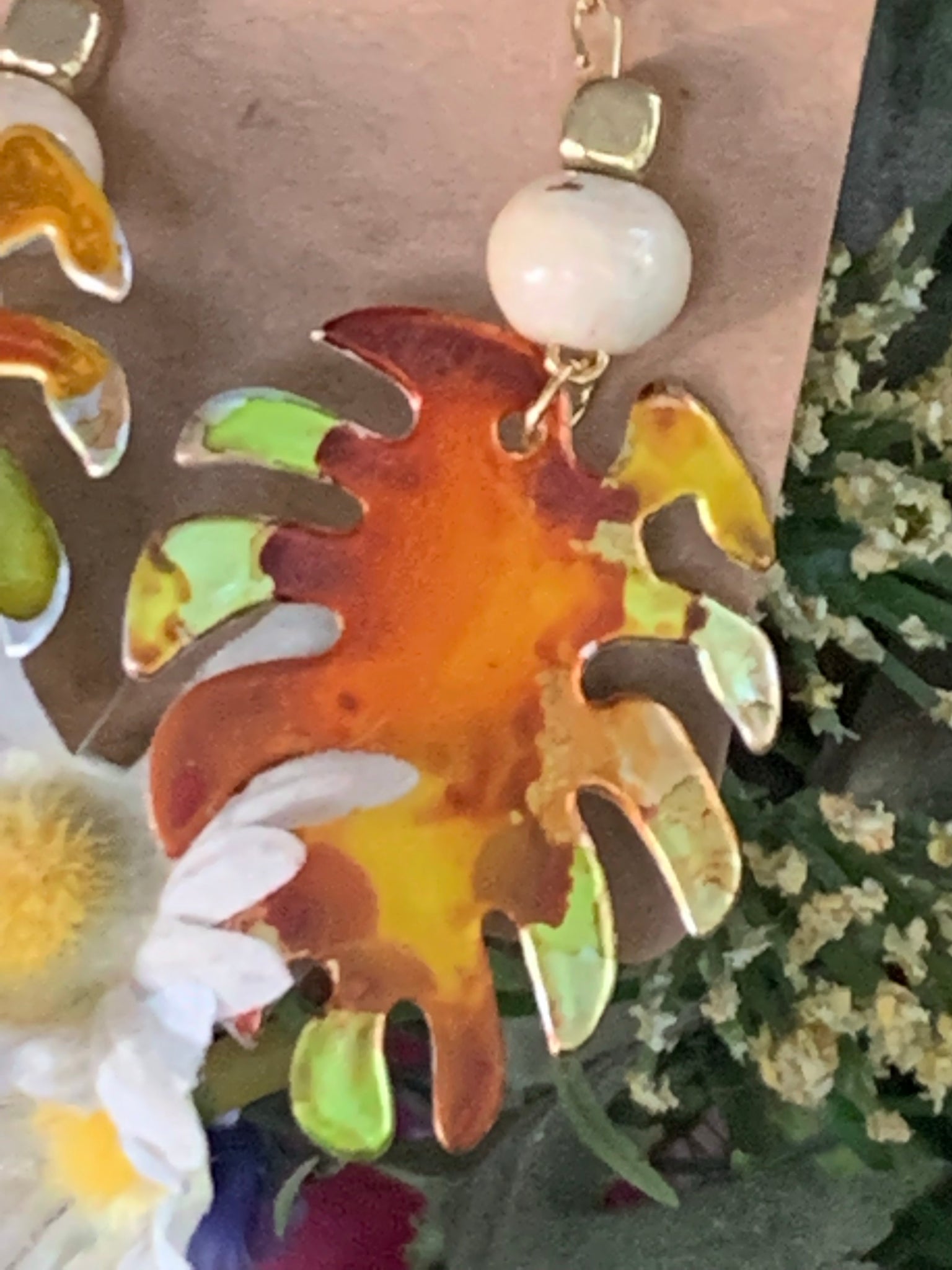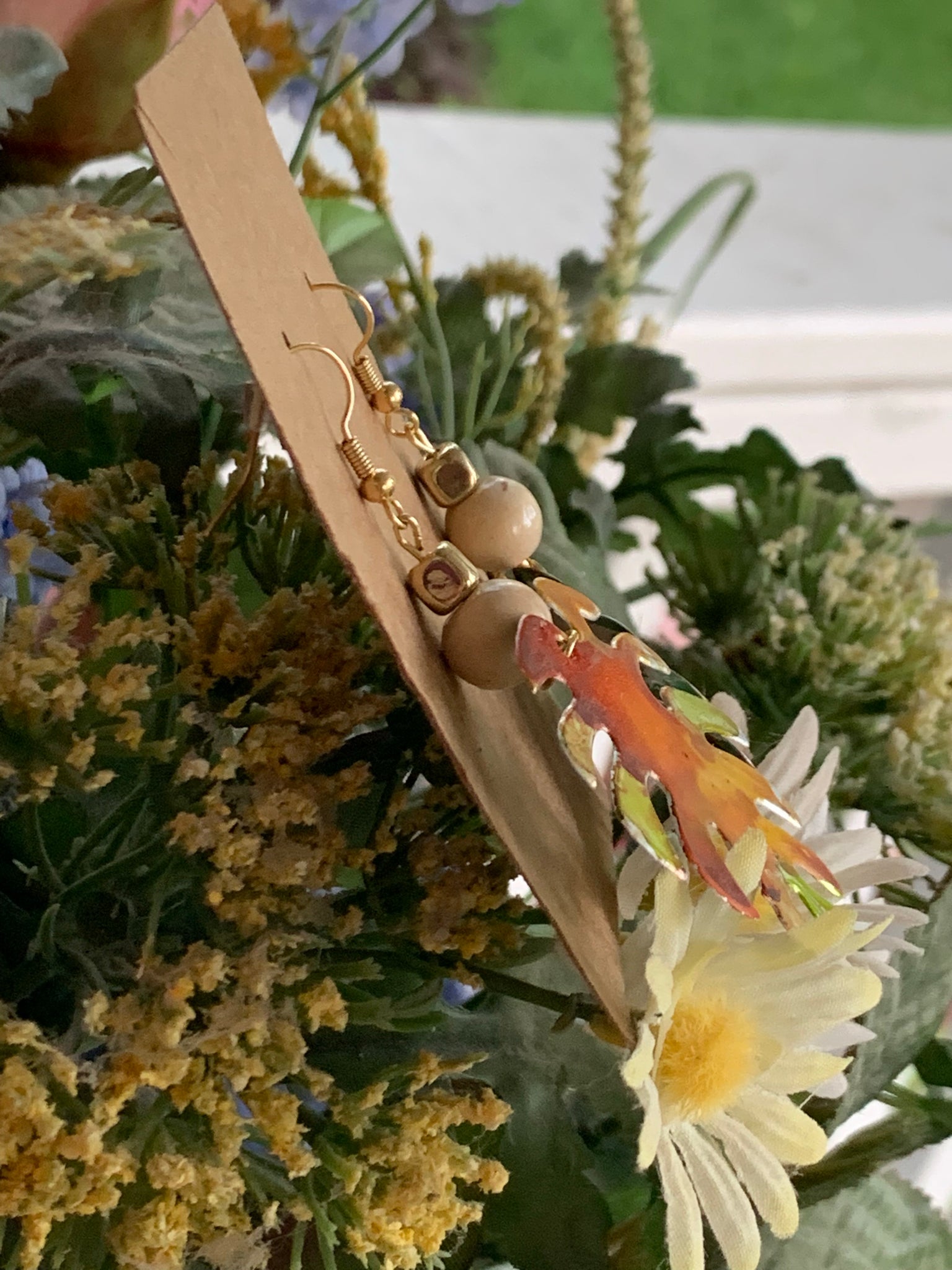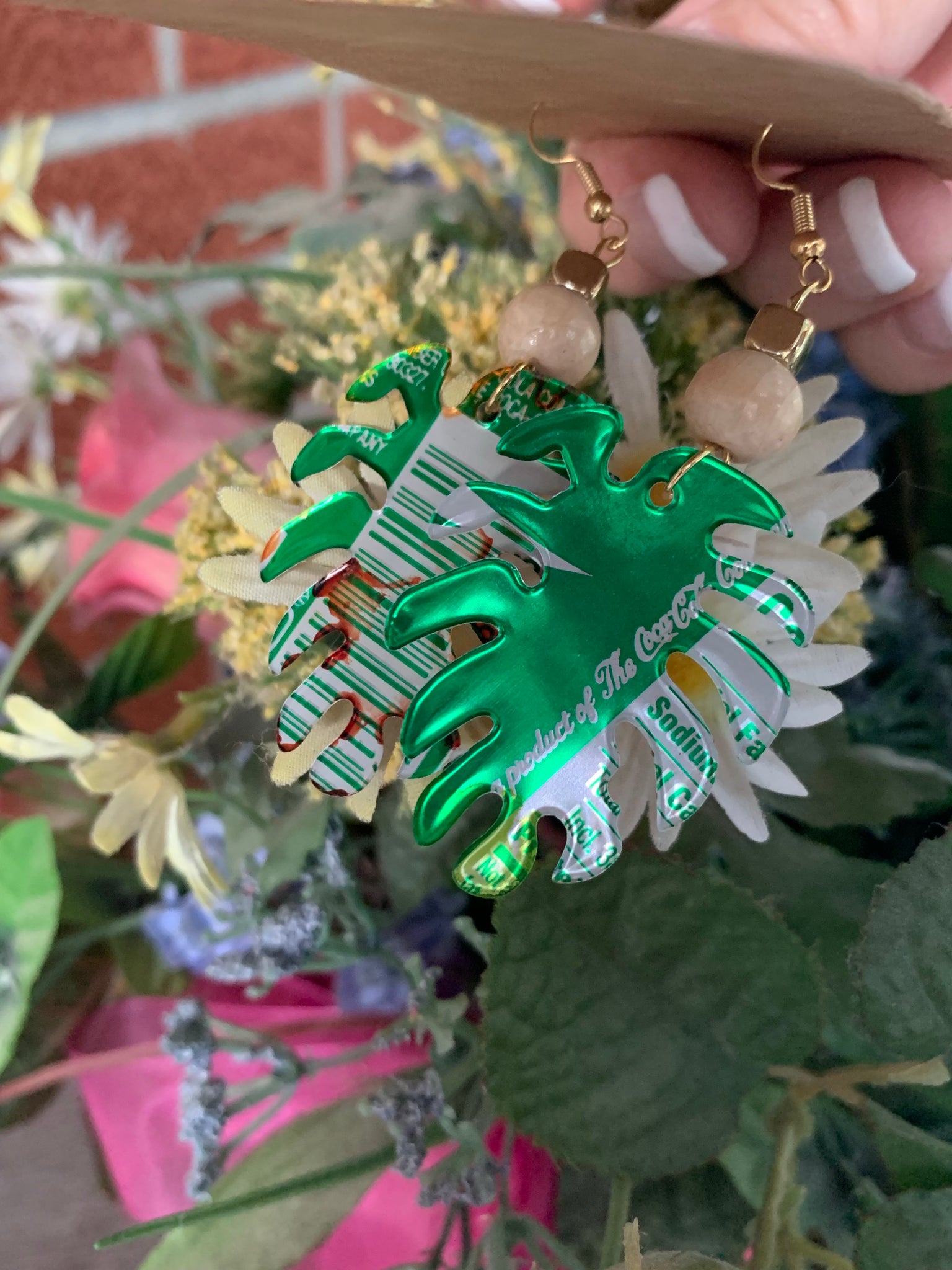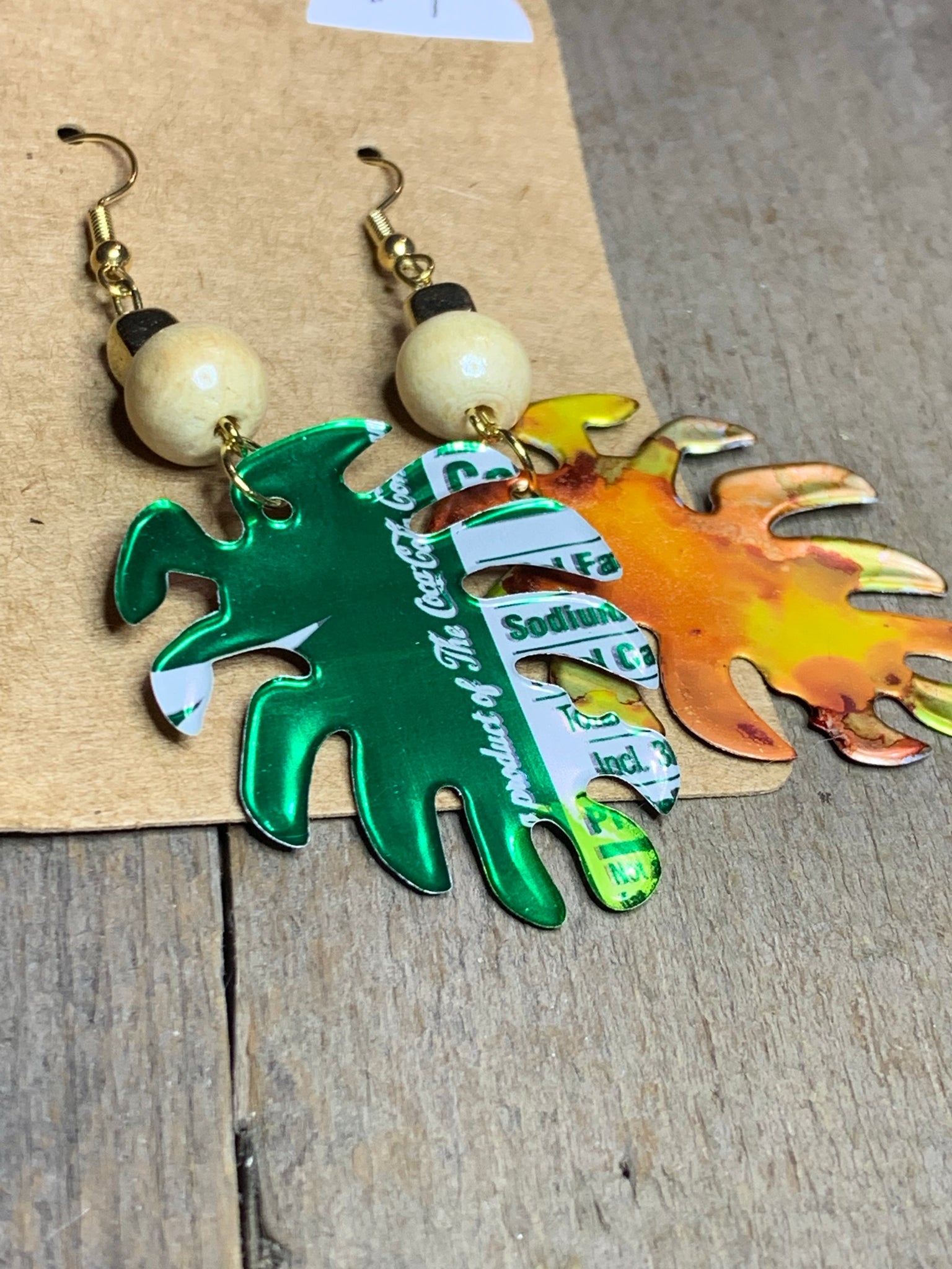These aluminum can earrings scream fall time. The colors are like the changing of the season. The beads add a cute accent.
