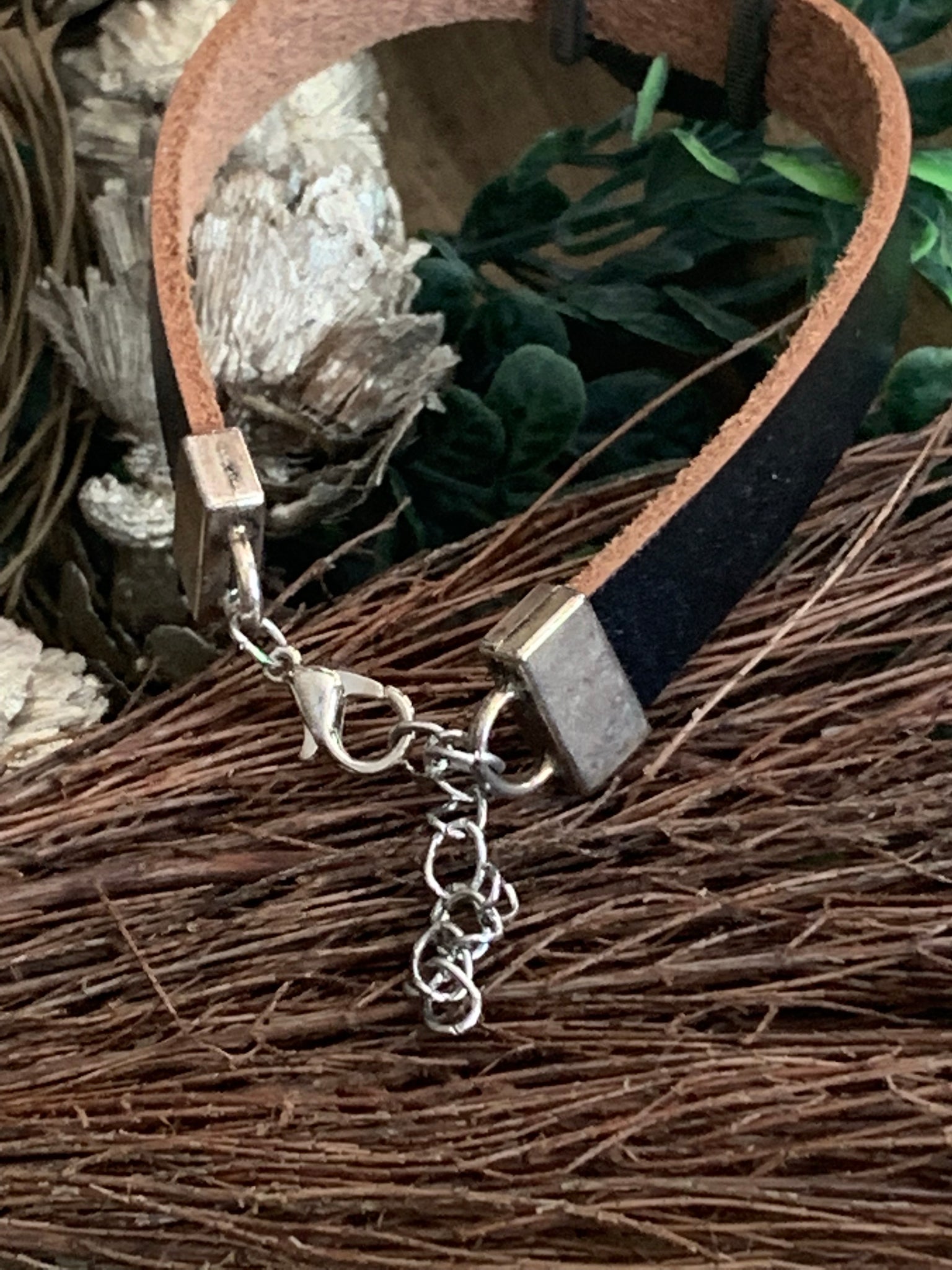 The bezel has paints used for the background filled with resin to seal it. This is a leather strapped. Has a lobster claw closure with an extender.