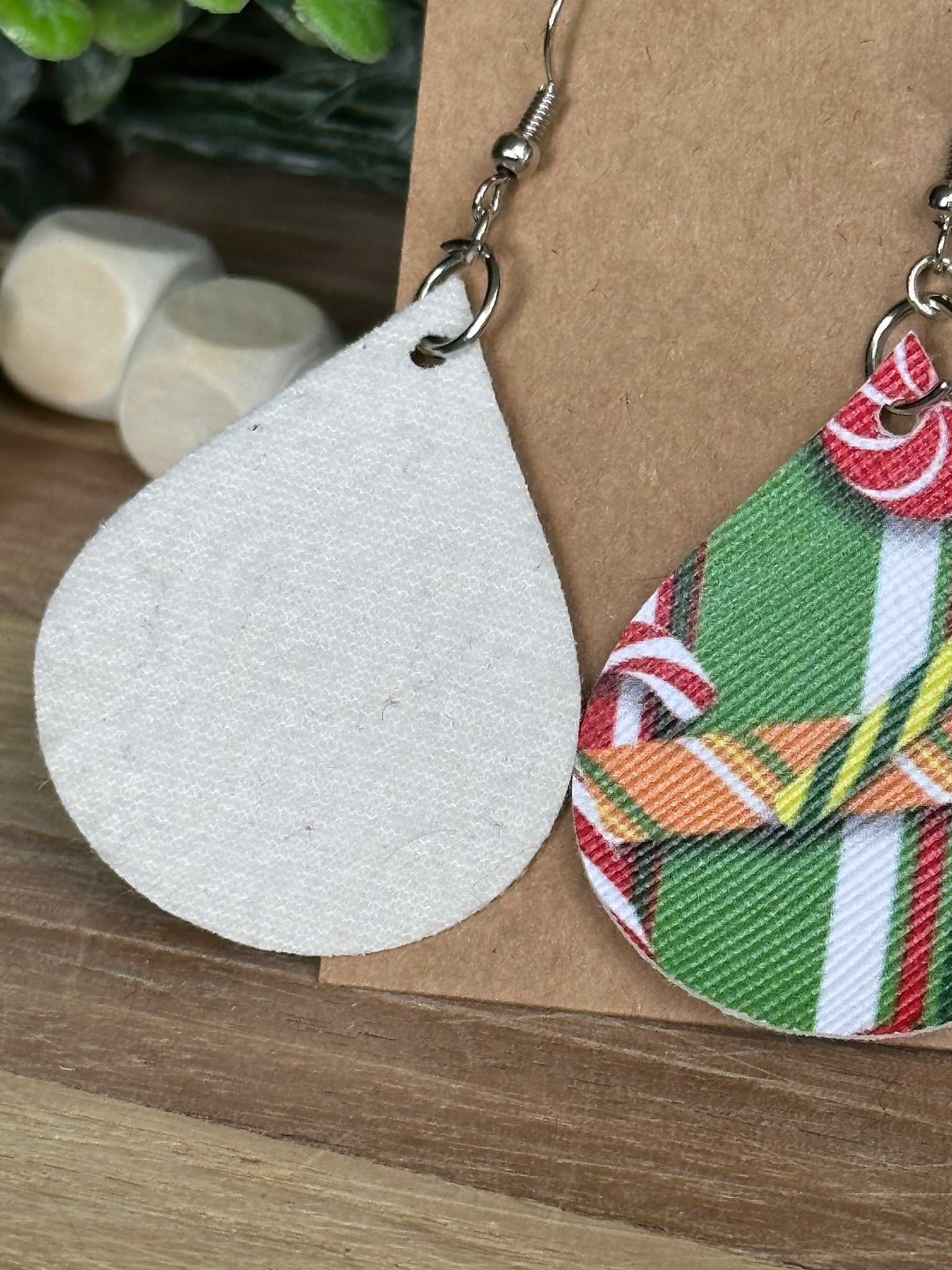 CLEARANCE ITEM!  Time to get in the spirit and get you a pair of Christmas candy earrings. Lightweight teardrops. Hang about 2 1/2”.