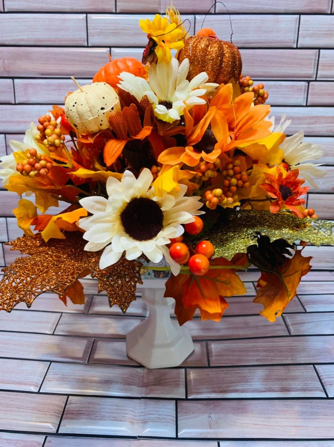 (Flowers are NOT included.). Decorate this stand with beautiful floral for a center piece. Change it out for the holidays as the color on the base of the holder is neutral which was why I picked this one! I post one that I created so you can see how beautiful it can look!