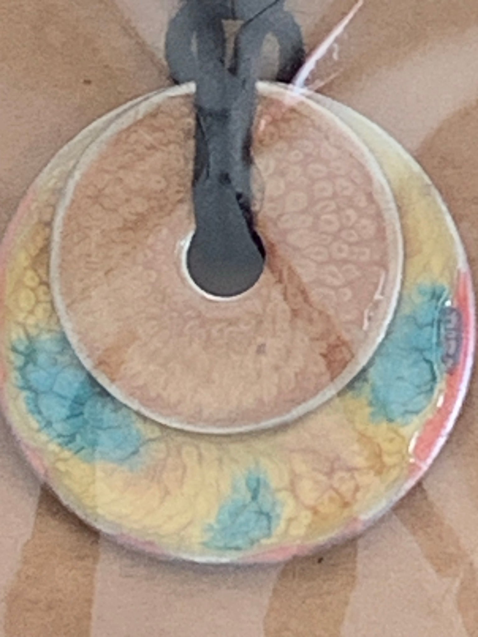 these bolts are painted with alcohol inks and then coated to protect the surface. Great for casual or dress up. This is on a 18" vinyl cord.