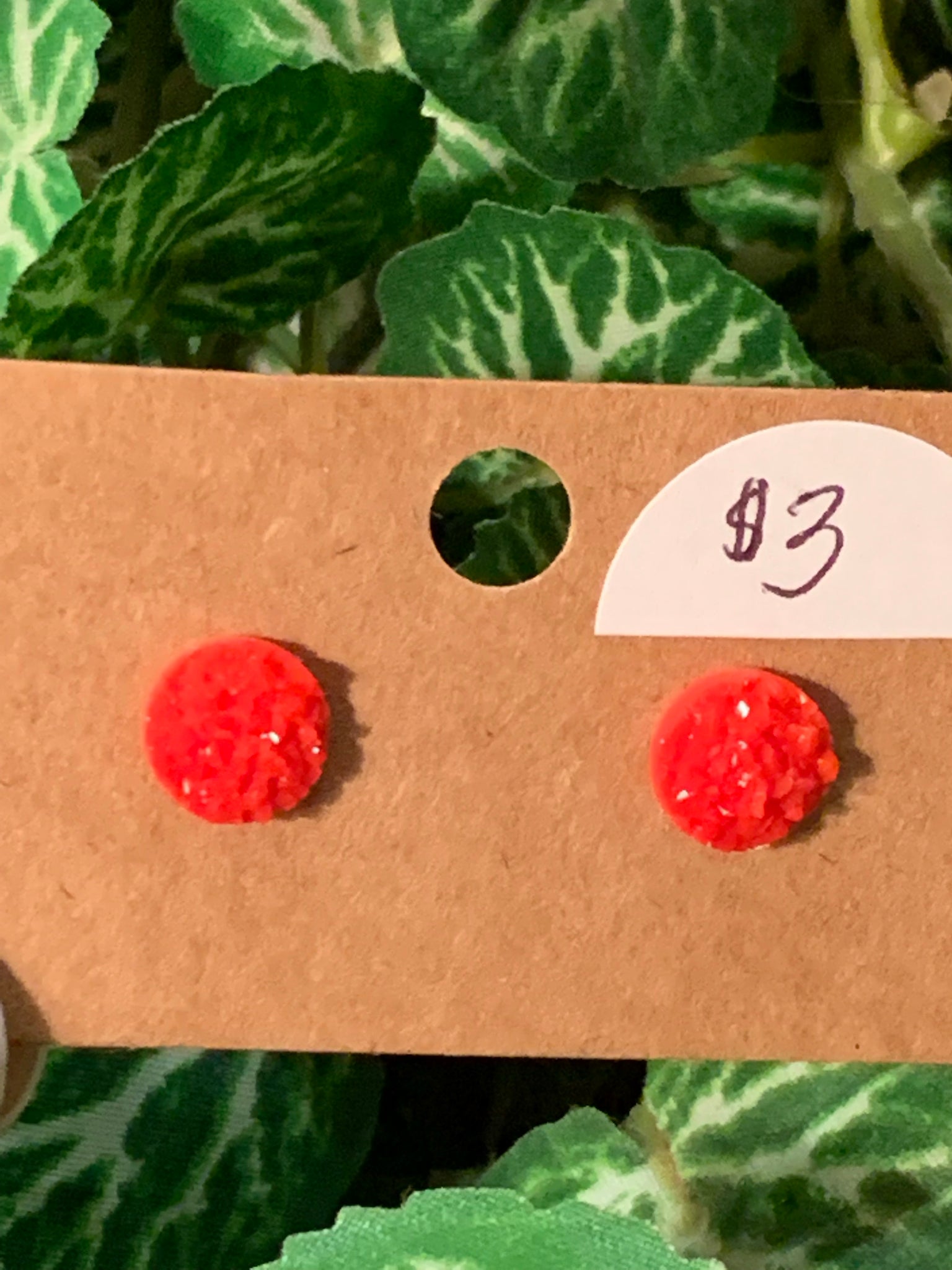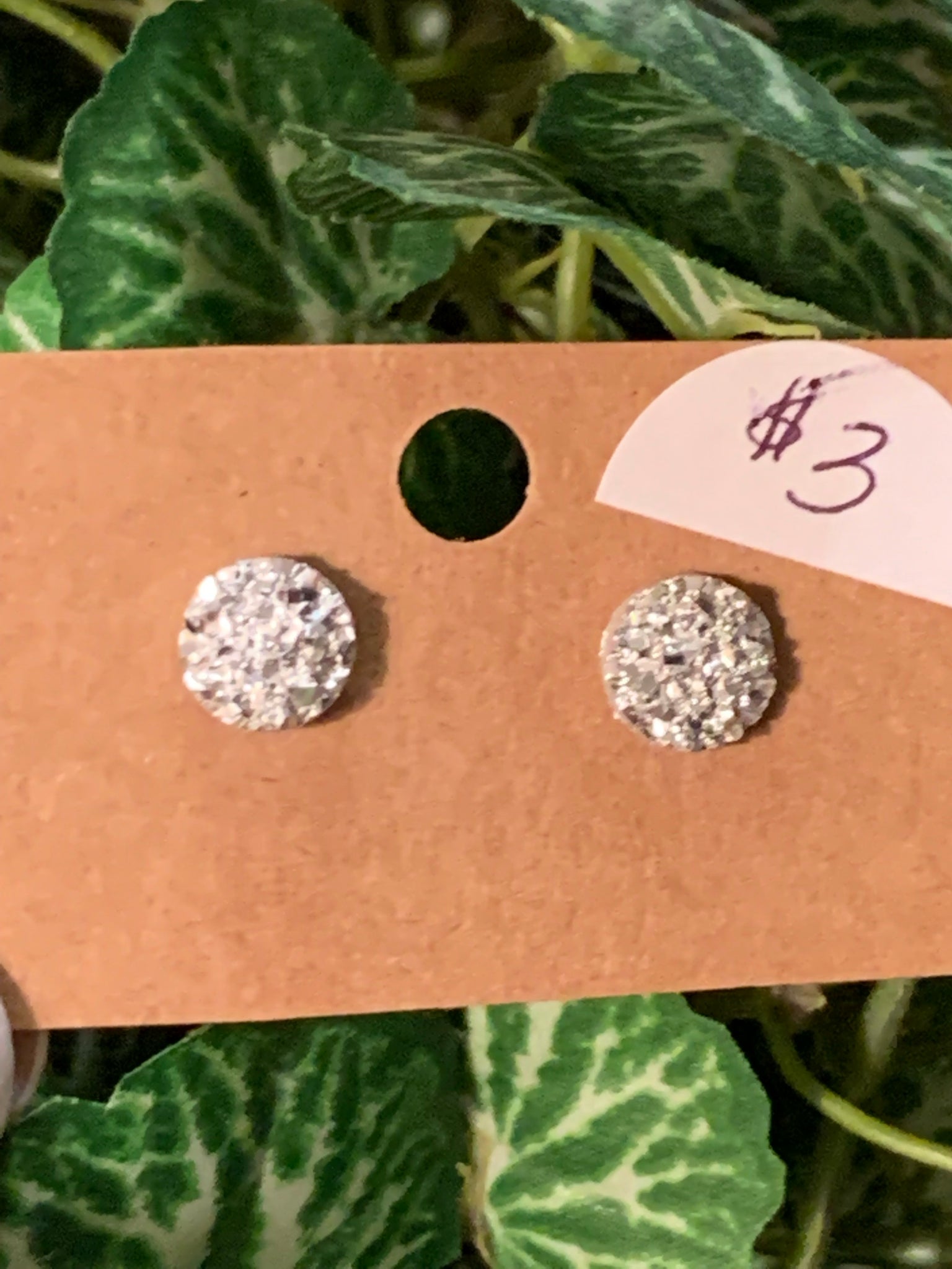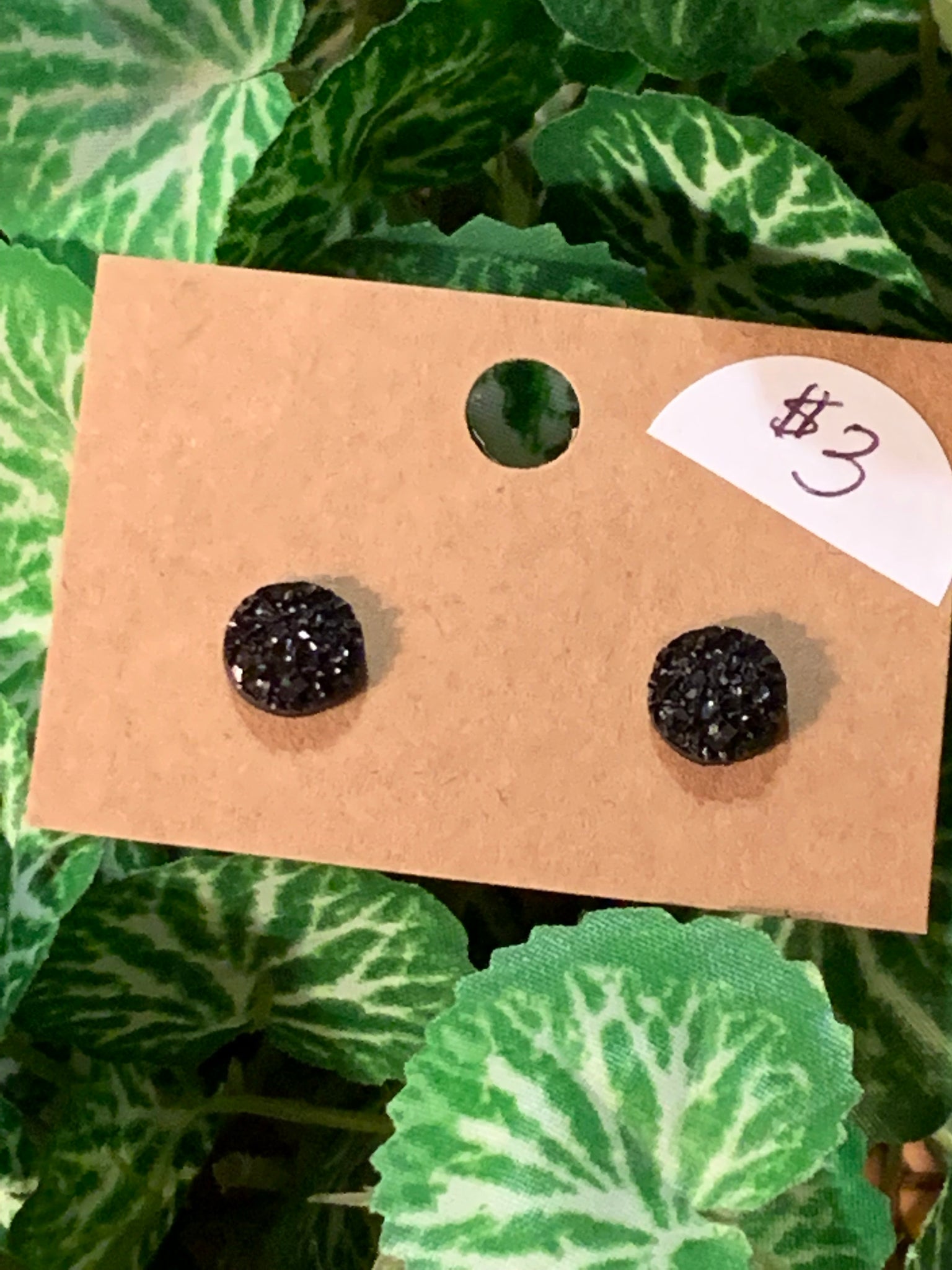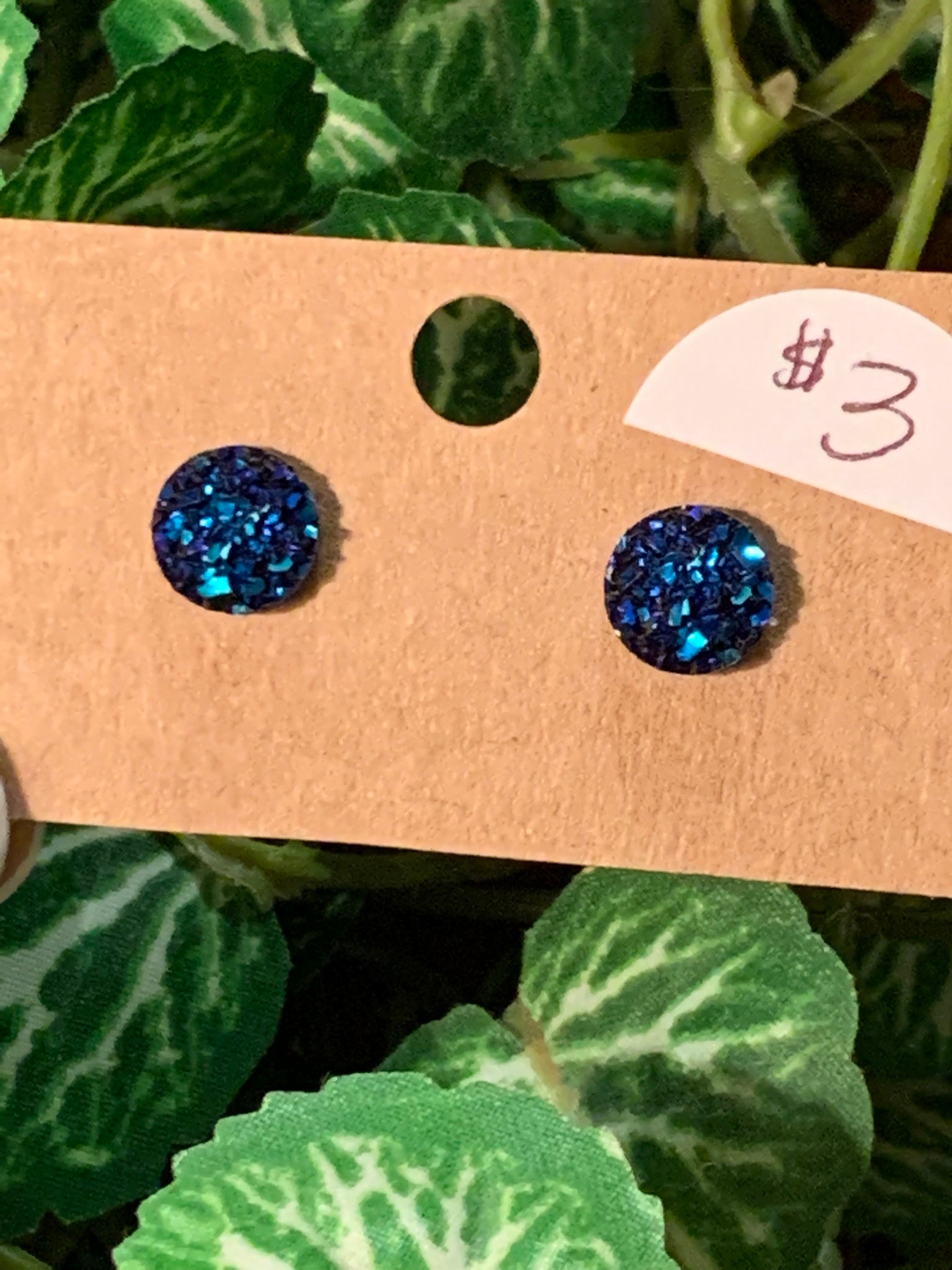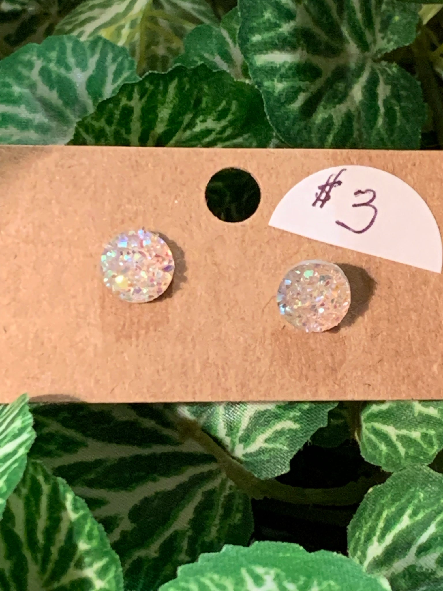 This is a druzy style earring but it is not a stone. They are an iridescent 3 mm post earring. They come in many colors. So adorable if you just like a small stud earring. These are also great for younger children to wear. They have a beautiful sparkle.