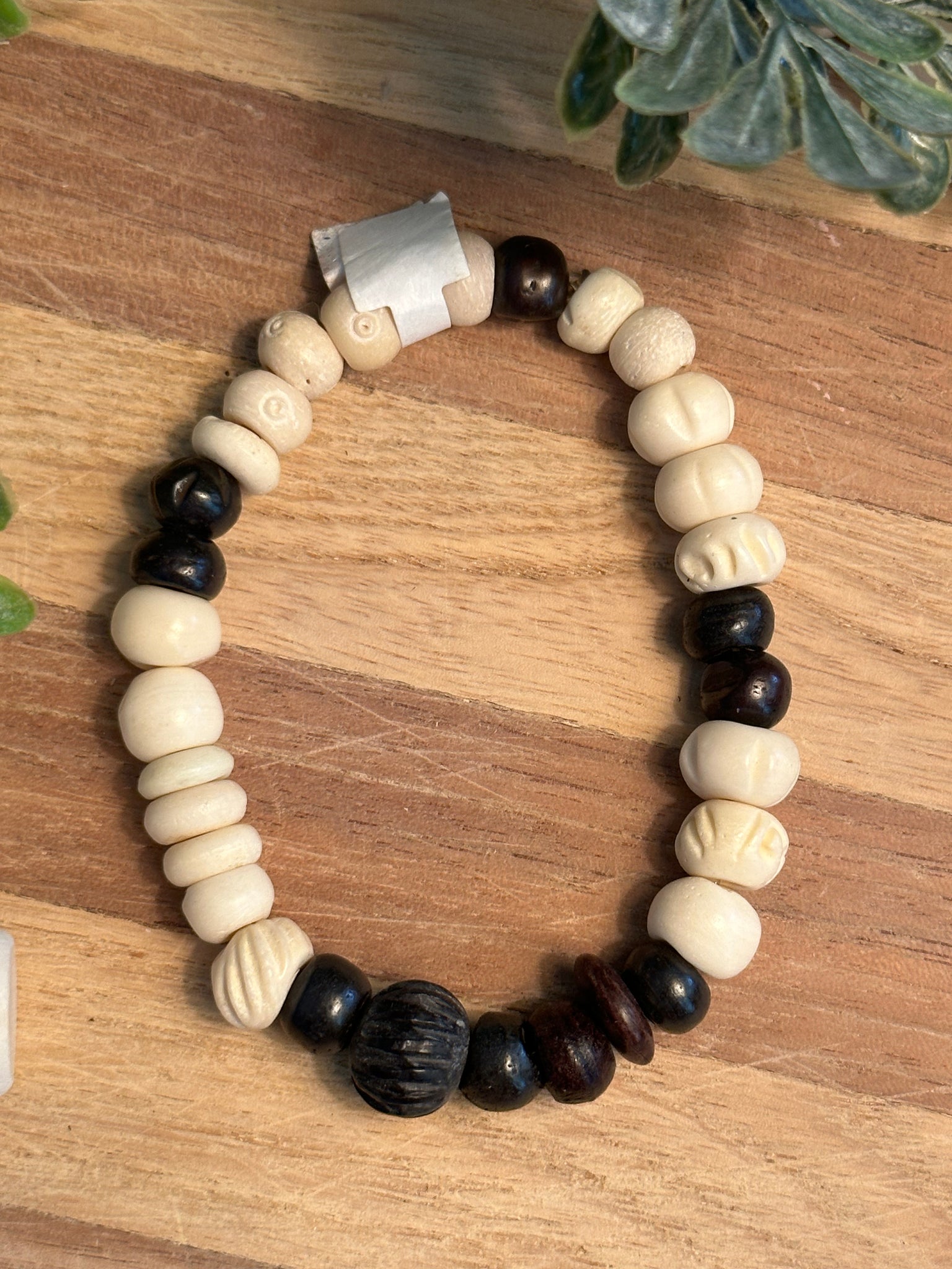 If you are a neutral tone wearer, this is perfect for you. This is a stretch bracelet.