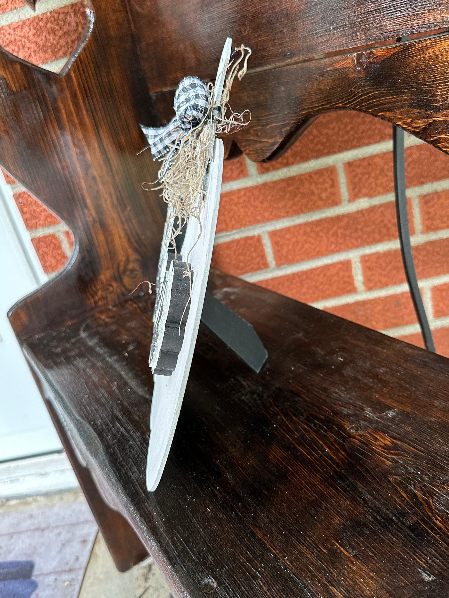 For neutral lovers - you will love this white pumpkin with Love plaque attached. Very eye popping. There is a stand on the back so it can sit on a ledge, mantle, shelf, or counter.