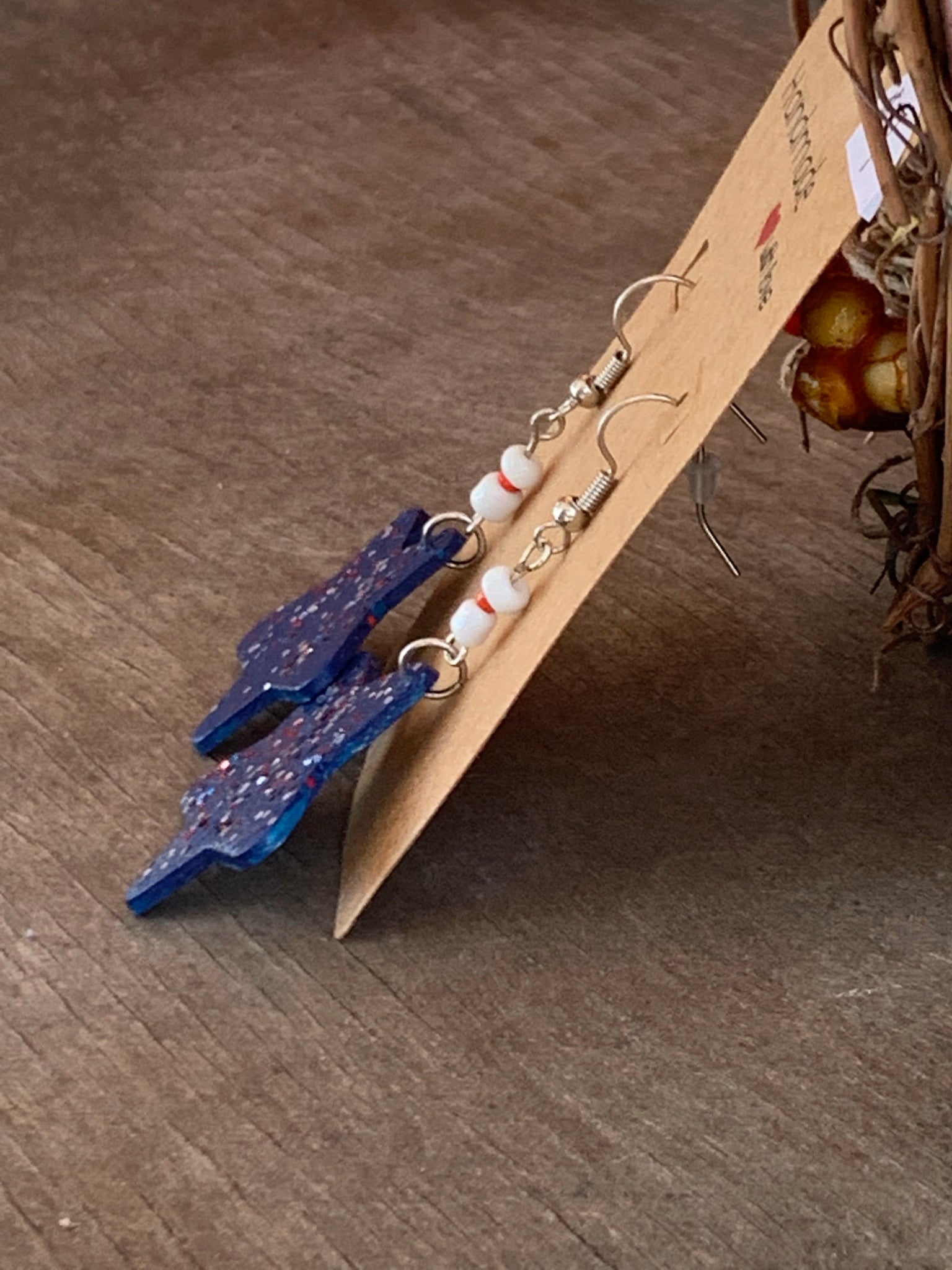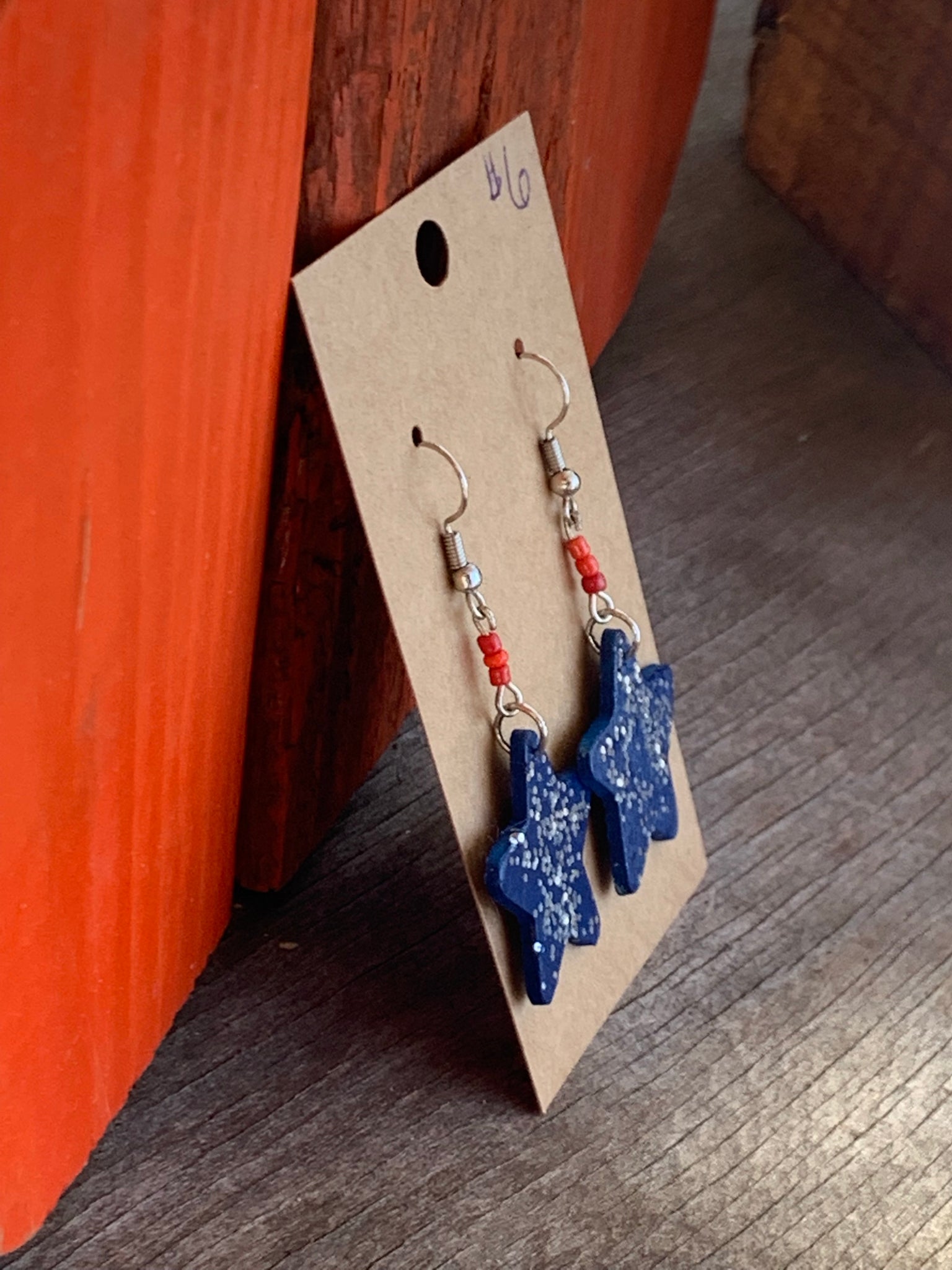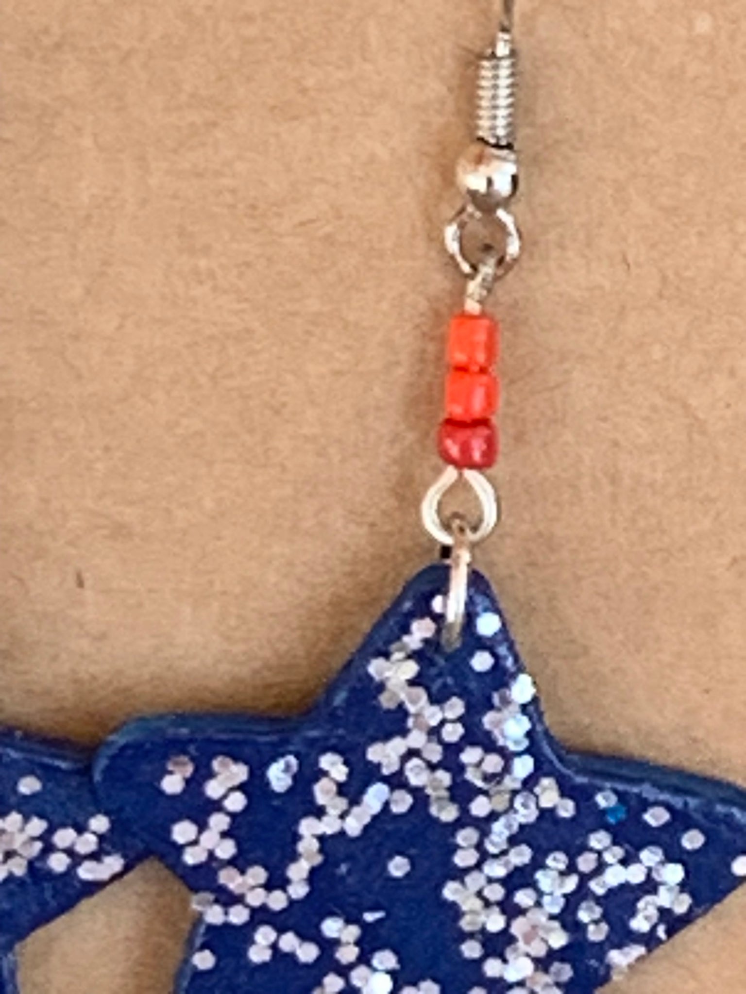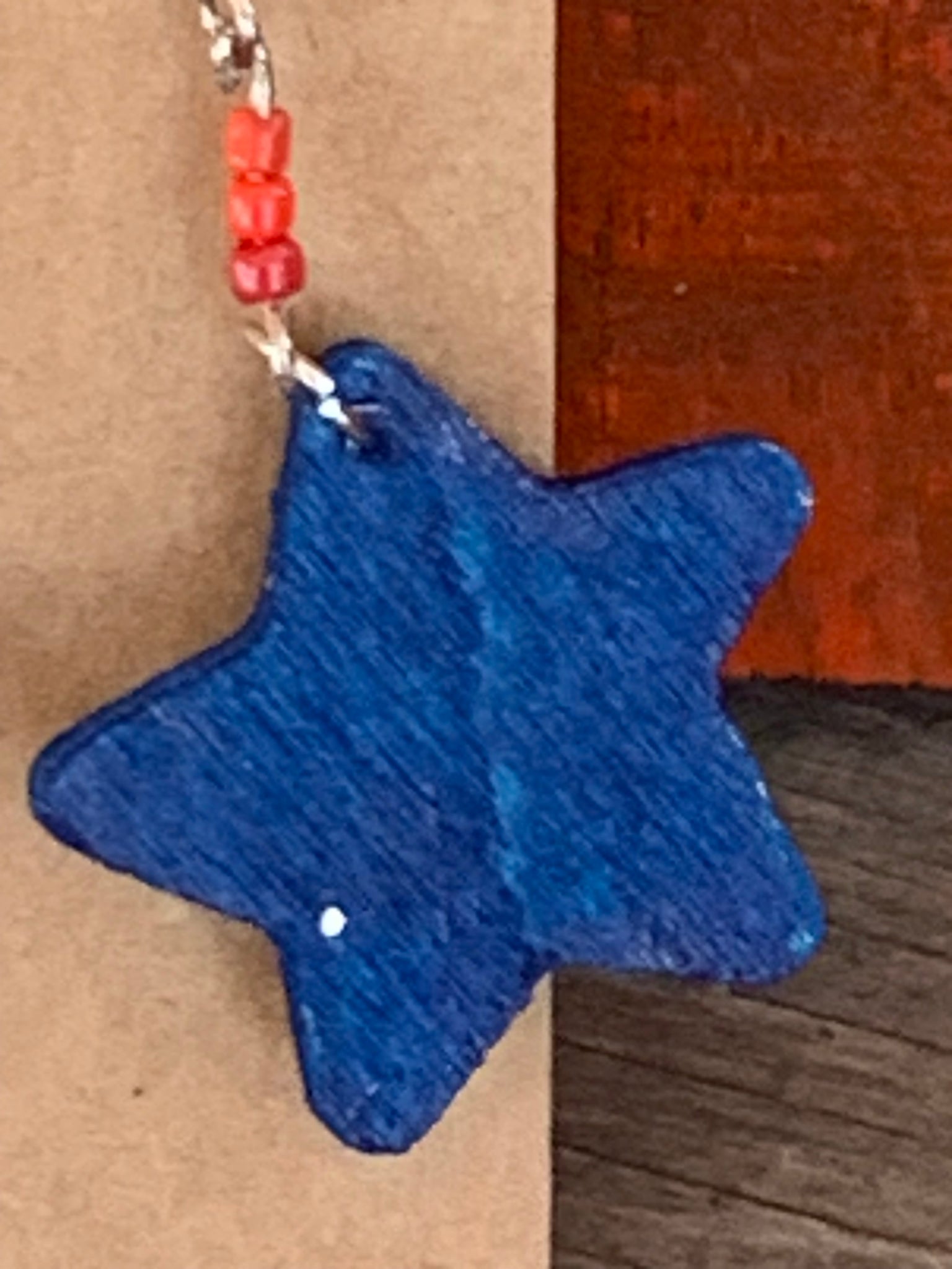 These wood earrings or hand painted and created. Show your true patriotism by grabbing a pair of these. The small beads are a nice accent to the earring.